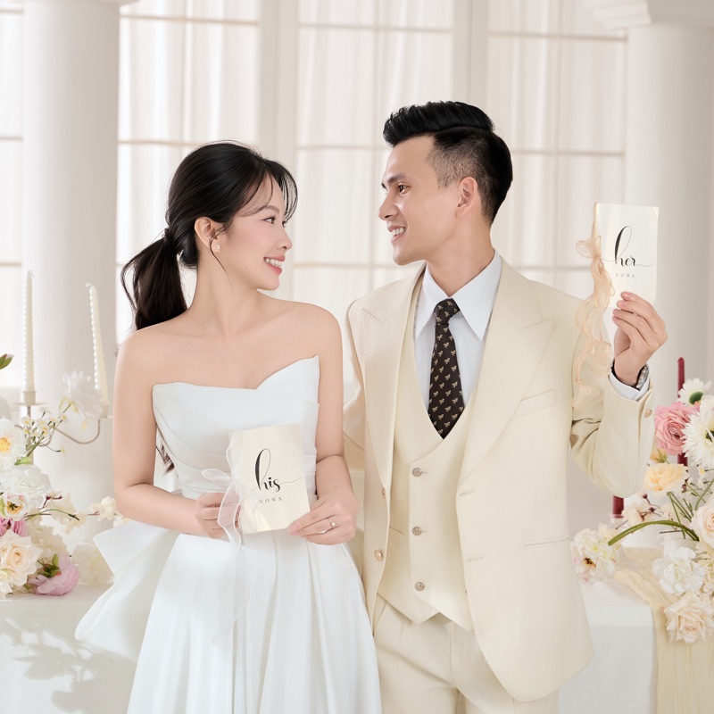 Hạnh phúc không phải là điểm đến mà là hành trình chúng ta đang đi - 5 năm tìm hiểu và yêu không phải là quãng thời gian quá dài, nhưng cũng không quá ngắn, đủ để chúng mình nhận ra nhiều điều. Cuối cùng ngày vui nhất của chúng mình cũng tới rồi. Cảm ơn vì chúng ta đã luôn là một phần trong cuộc sống của nhau. Em và anh không chỉ là người yêu mà còn là tri kỷ, là bạn đồng hành. Kể từ Ngày hôm nay, em là Vợ, anh là Chồng và chúng ta là Một gia đình hạnh phúc.