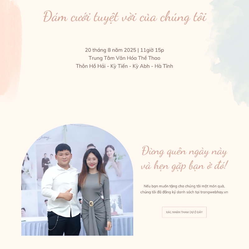 Chúc mừng ngày trọng đại của hai bạn! Mong rằng tình yêu này sẽ mãi bền vững theo thời gian, vượt qua mọi khó khăn và thử thách.