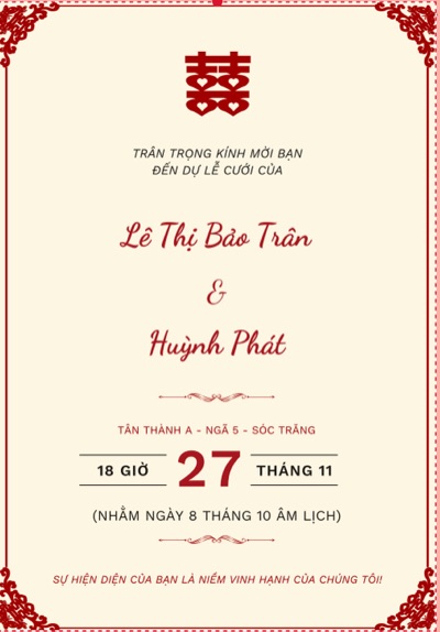 Chúc mừng ngày trọng đại của hai bạn! Mong rằng tình yêu này sẽ mãi bền vững theo thời gian, vượt qua mọi khó khăn và thử thách.