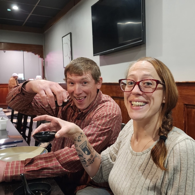 The day started as any day, just going through the motions as a cashier at work that day.... "Anything else for you today?" "Card or cash?" " Today's total is... " Then there before me was this stunning strawberry blonde man getting ready to go fishing with his side kick! After line holding for a small conversation, with a beef stick and chocolate milk in hand and a smile to kill off he goes. This became a regular thing until I left the job. 2 LONG years later and life changing events we meet again! Right time,right place and here we are 2 more years later!